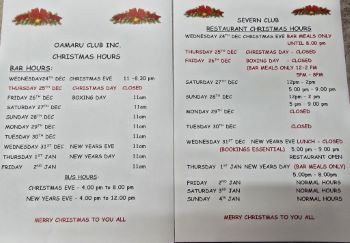 We would like to take this opportunity to thank you all for your patronage over the past 12 months and look forward to seeing you all back after some well-earned R & R, drive safely over this festive season.